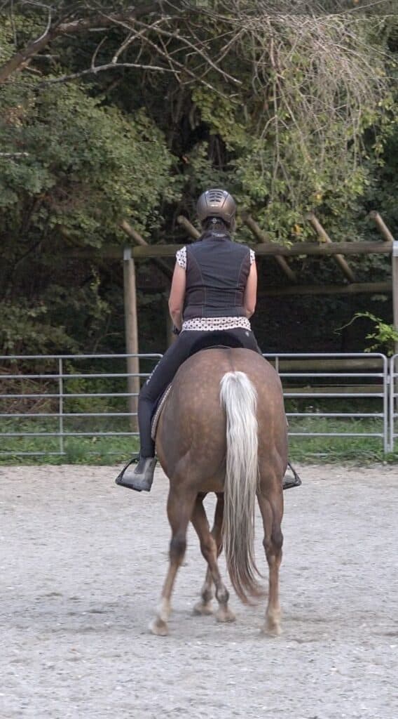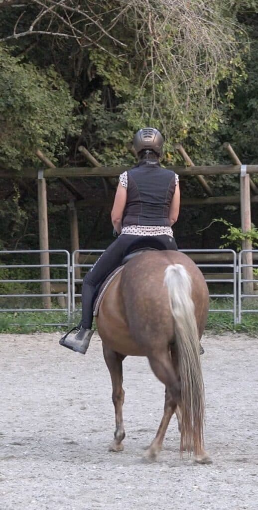 It’s a very useful exercise, but don’t overdo it as it can be tiring. Blondie had lots of difficulties with this movement as she was so locked up in her body. Working on it consistently in small increment helped her to become more mobile and now she can do a full circle under saddle in a calm and (much more than before) balanced manner.