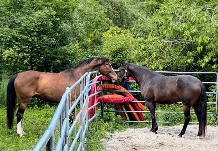 Taking at least one of her new friends along when working Malou in the arena, kept her relaxed and concentrating on the lesson.